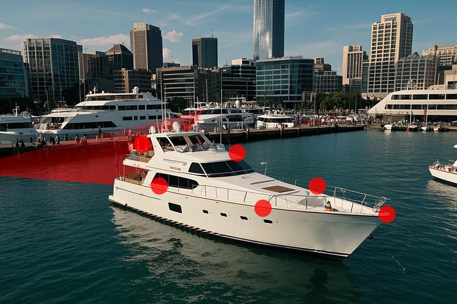 据国际海事组织2024年报告显示,约有45-55%游艇事故源于视野盲区;而传统监控系统在复杂水域的有效预警普遍<65%(欧盟海事安全局2023统计)。