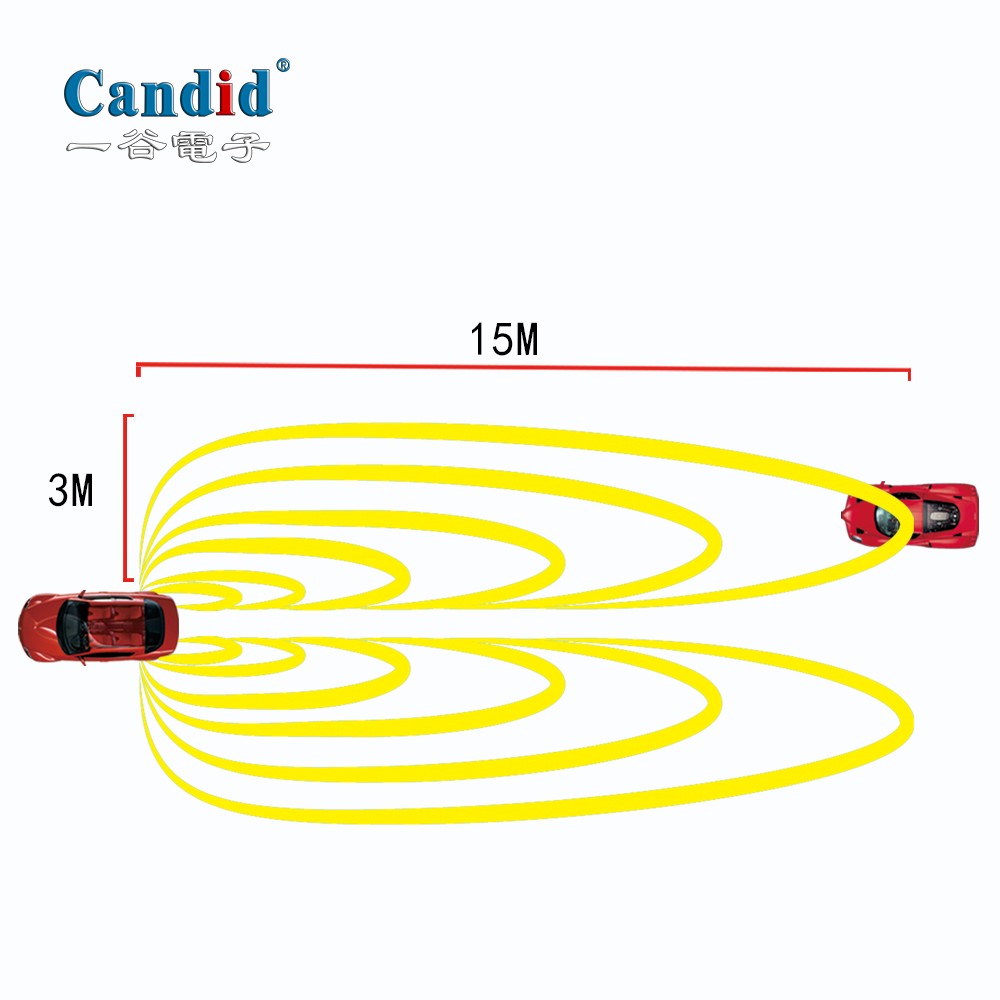 后方探测距离3×15米
