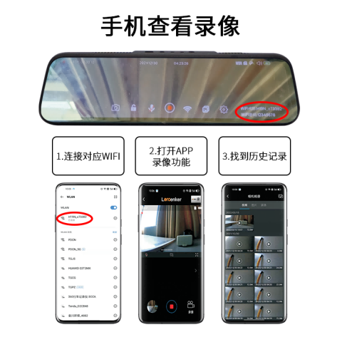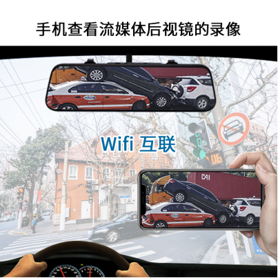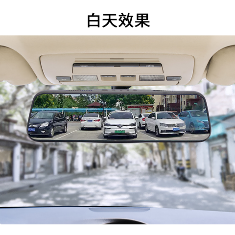 流媒体后视镜前后两个有摄像头,行车的过程中支持一直录像,当内存卡的空间满了,会自动删除早期保存的视频。