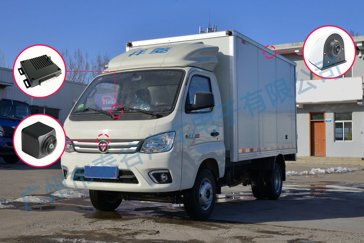 处理系统:360全景影像主机一般可以装在驾驶位仪表盘附近,结合货厢实际情况,可以隐藏式安装。